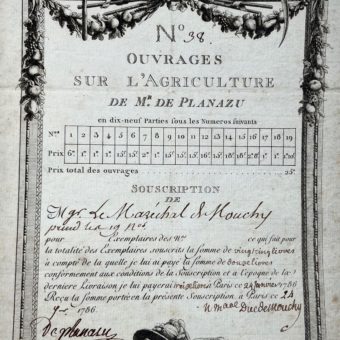 Très belle souscription gravée pour les Oeuvres d’agriculture de Rey de Planazu