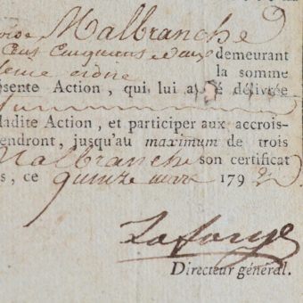 « Action de la caisse d’épargnes et de bienfaisance du sieur Lafarge » de 1792