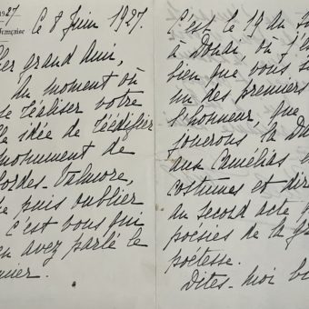 Longue lettre de Judith Gautier illustrée d’un dessin de sa villa de Saint-Enogat