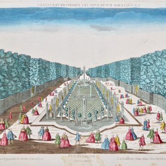 3 vues d’optique animées du château et des jardins de Versailles.