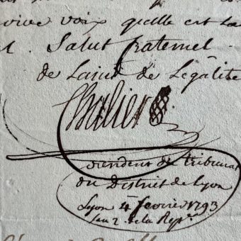 Très rare et intéressante lettre de Gracchus Babeuf, incarcéré à Sainte-Pélagie