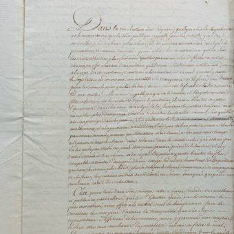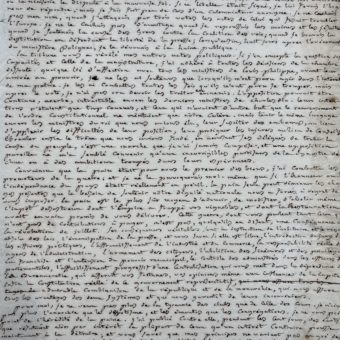 Manuscrit du compte-rendu de la séance inaugurale de la Société du Portique républicain, par Michel de Cubières