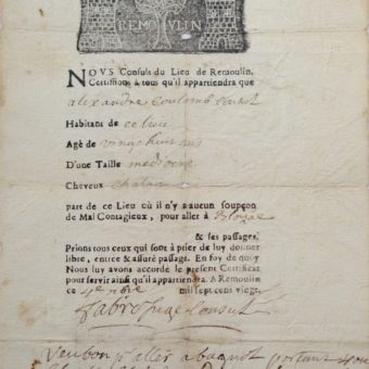 [Peste] Laissez-passer officiel durant la grande épidémie de 1720