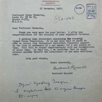 Le mathématicien et Nobel Bertrand Russell recherche des fonds pour la Fondation pour la Paix