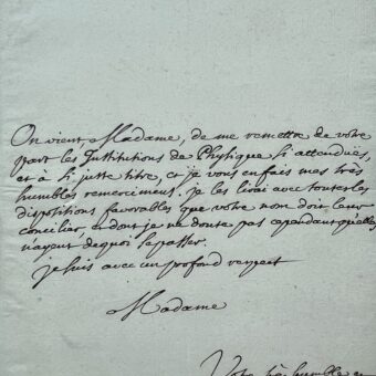 Très rare lettre de l’inventeur Jacques Vaucanson sur les manufactures de soie d’Aubenas et de Lavaur