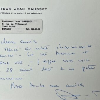 Invitation à « la petite cérémonie » du prix Nobel de médecine Jean Dausset