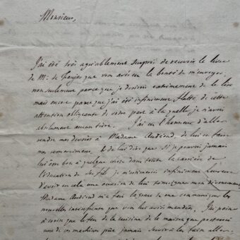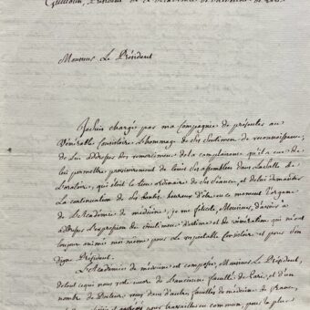 Longue lettre de Guillotin, président de l’Académie de Médecine, proposant des assemblées à l’Oratoire du Louvre