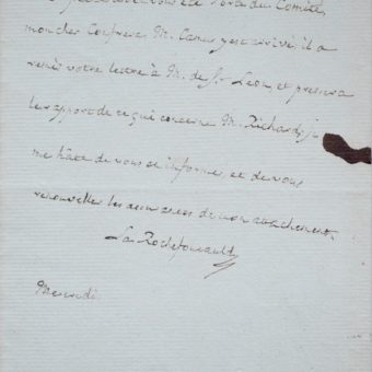 Deux lettres de Louis Alexandre de La Rochefoucauld à Antoine-Laurent de Jussieu
