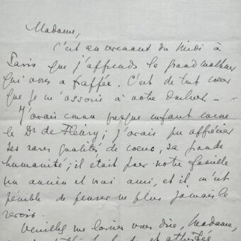 La psychanalyste Marie Bonaparte assure son confrère Maurice de Fleury de son amitié