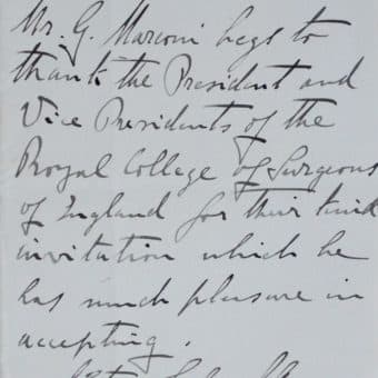 Le prix Nobel de physique, Guglielmo Marconi, se rend au Collège Royal de chirurgie d’Angleterre