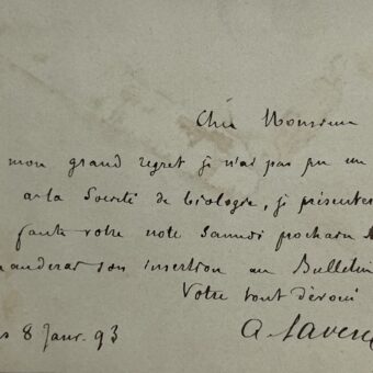 Carte autographe d’Alphonse Laveran, découvreur du paludisme et Nobel de médecine