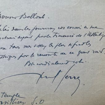 Lettre de remerciements et d’admiration de Étienne Oehmichen, l’inventeur de l’hélicoptère, à Auguste Lumière