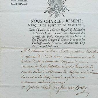 Bussy-Castelnau envoi un officier combattre en Inde auprès de Suffren.