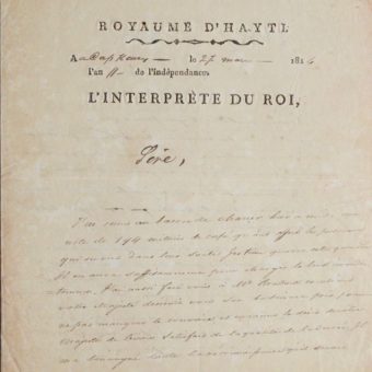 Lettre adressée à Henri 1er roi d’Haïti par son secrétaire en 1814