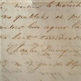 Pièce signée par le commandant des troupes aux Indes, Bussy-Castelnau.
