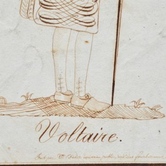 Portrait à la plume de Voltaire réalisé en calligraphie