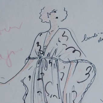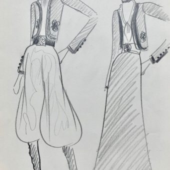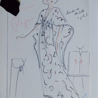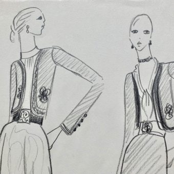 Beau dessin d’Yves Saint-Laurent : un mannequin en tailleur