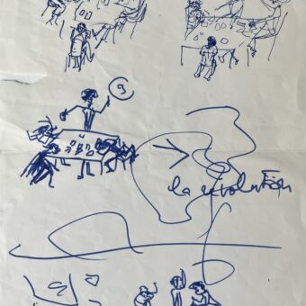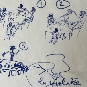 Françoise Sagan dessine, sous forme de bande dessinée, une réunion qui dégénère en révolution