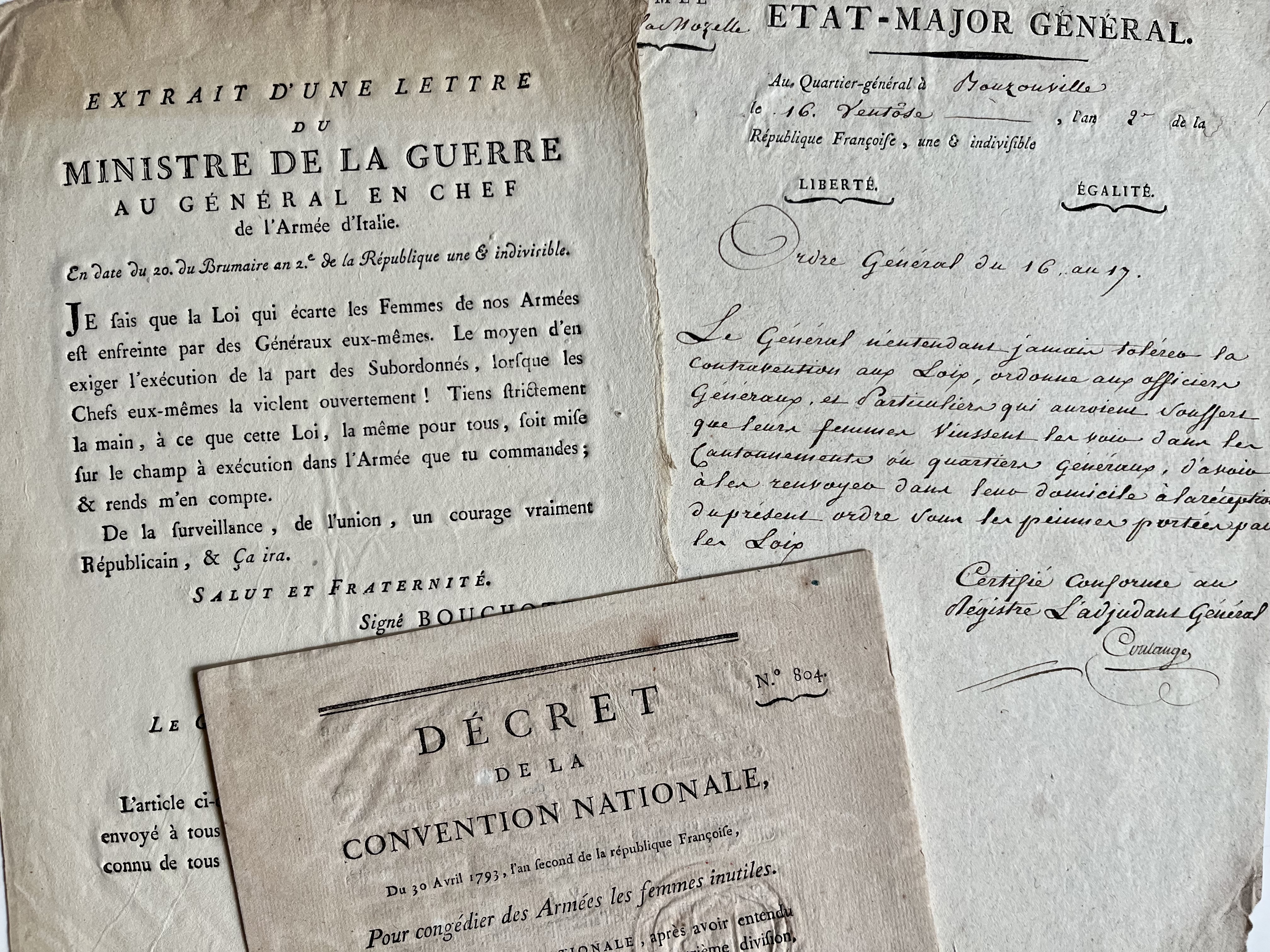 - Décret de la Convention du 30 avril 1793 «pour congédier des armées les femmes inutiles».