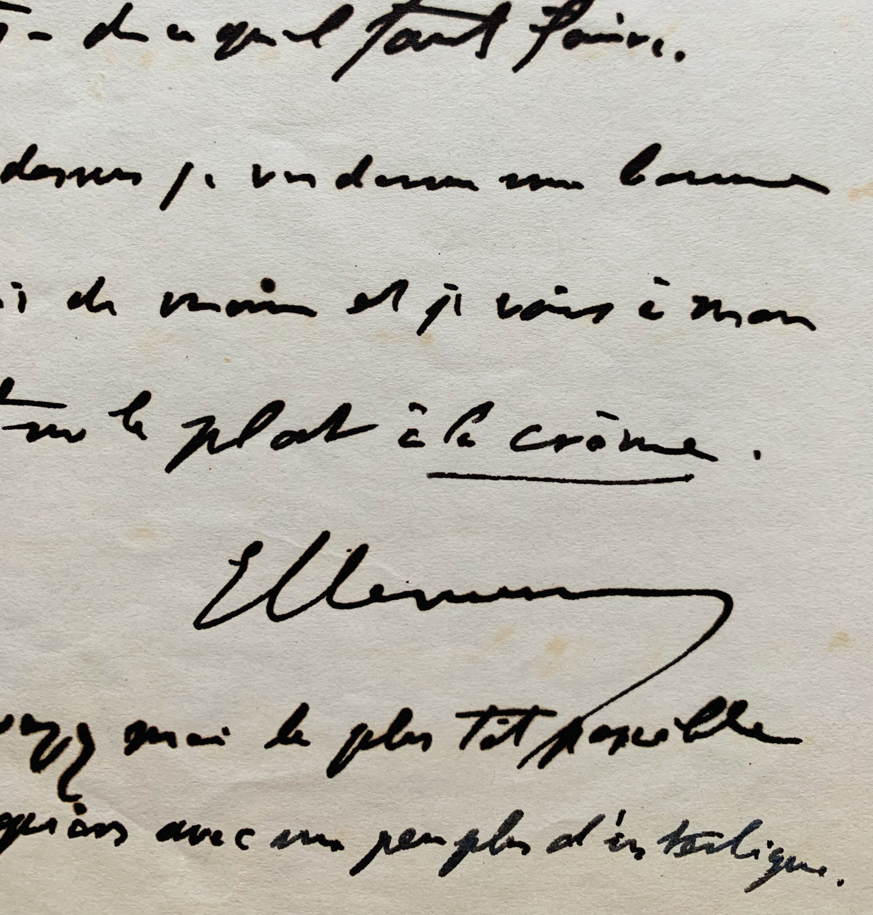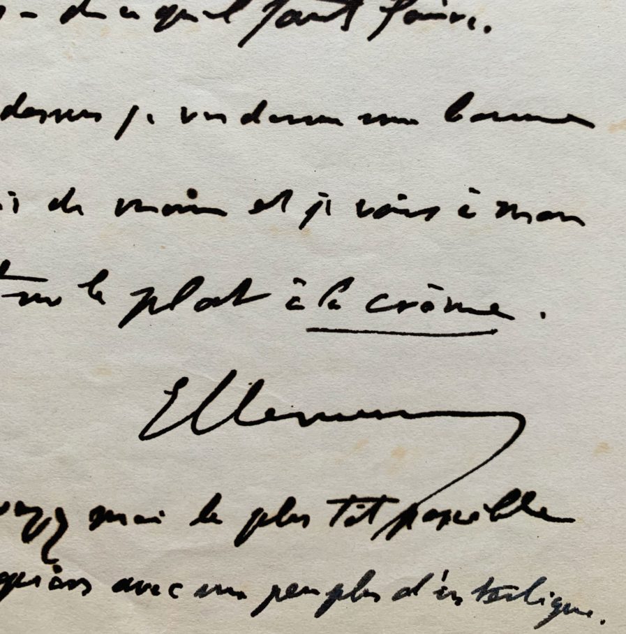 "Il est 4h. (?) m'embrasse de ses feux et la mer "retentissante" m'envoie des bouillonnements de lueurs laiteuses que je vais retrouver tout à l'heure dans cette crème dont vous vous délectez [...] en rêvant que Poincaré vient vous offrir de vous aimer.