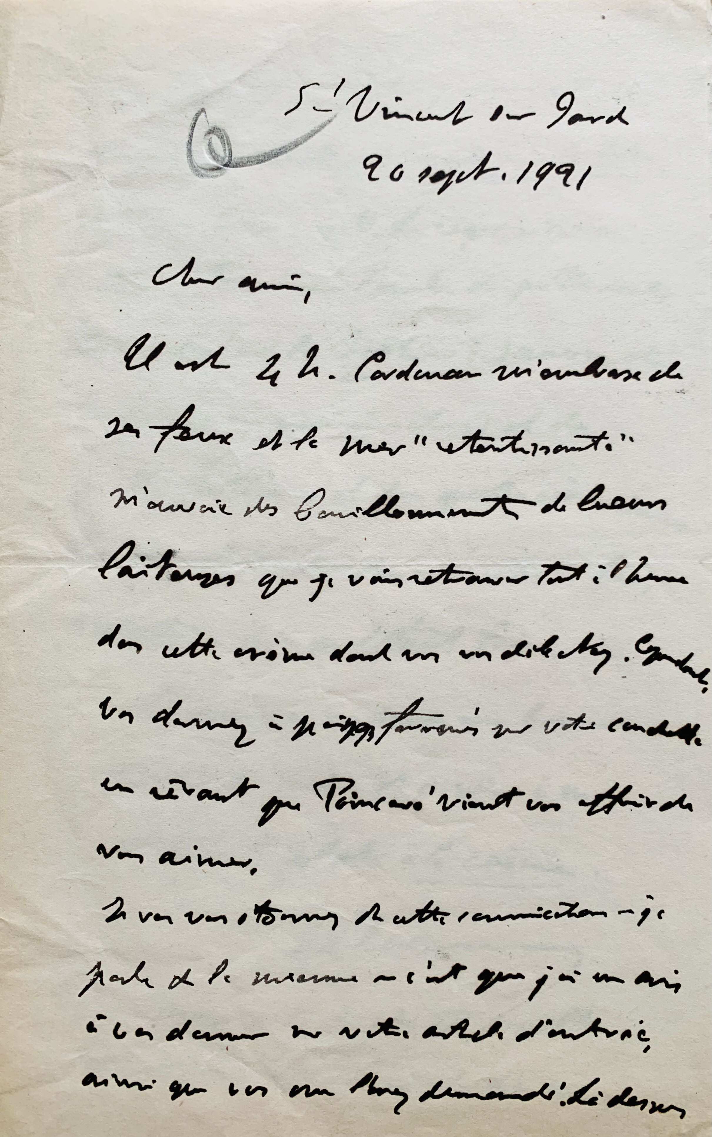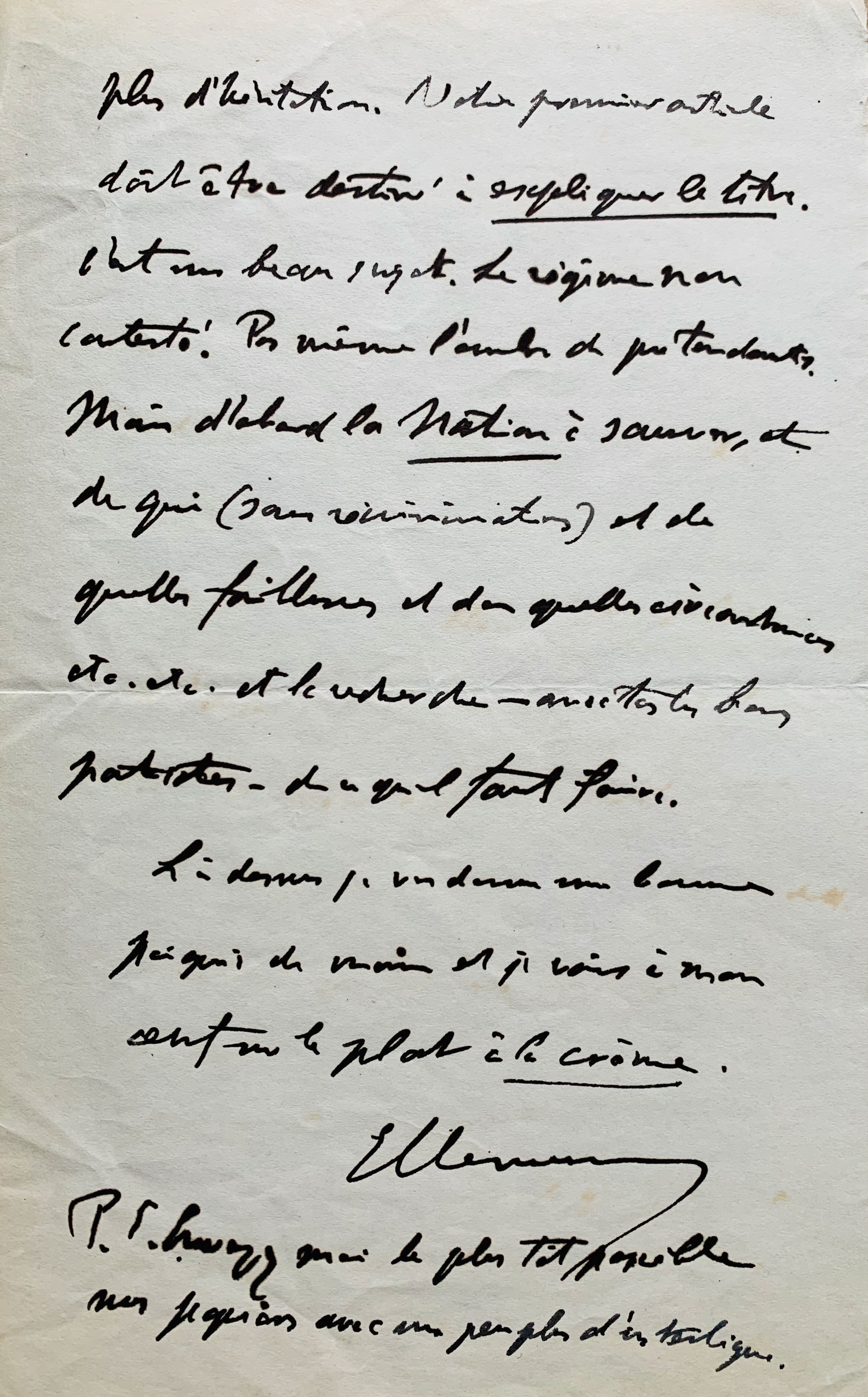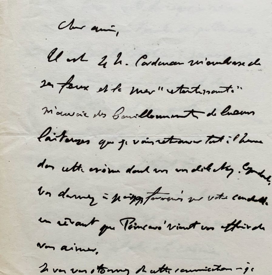 Georges Clemenceau (Mouilleron-en-Pareds, 1841/1929)Belle lettre de Clemenceau à son ami André Tardieu, écrite de Saint-Vincent-sur-Jard, lui donnant quelques conseils pour le premier article de son journal.