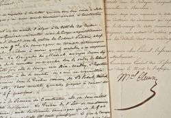 Intéressante lettres sur les affaires d'Algérie, adressées au maréchal de Castellane. Mal Clauzel comme gouverneur général (déchirures). Lettre d'un général qui décline le commandement en chef des troupes d'Afrique (« c'est trop de travail et trop de responsabilité ; Alger 1836). Intéressante lettre d'un général écrite de Constantine sur la campagne de pacification des régions de l'Est. Enfin une très belle lettre signée « De Lioux » écrite « au Thessiet El Haad » raconte les razzias et destructions perpétrées durant la traque d'Abd-el-Kader (1843).