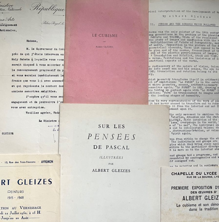 - 2 cartes pour des expositions : "Première exposition d’ensemble des œuvres d’Albert Gleizes, le cubisme et son dénouement dans la tradition" (Lyon, 1947) et "Albert Gleizes, peintures 1915-1948" (Avignon, 1950).