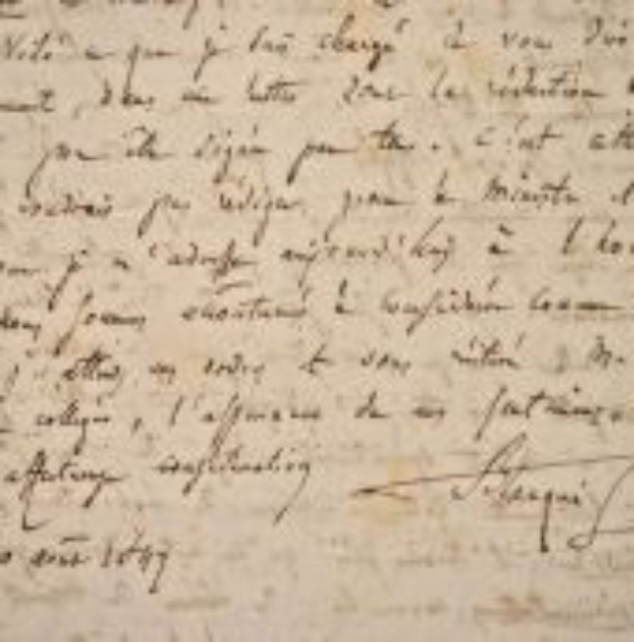 Adolphe Blanqui (Nice, 1798/1854)L'économiste Adolphe Blanqui demande, dans cette longue lettre, l'arbitrage du Ministre de l'Instruction publique, Narcisse-Achille de Salvandy, dans le cadre d'une querelle administrative au sein du Conservatoire des arts et métiers : « Je suis désespéré d'aller troubler vos courts loisirs jusqu'aux eaux de Plombières ; mais il s'agit d'un appel à votre intervention dans un sérieux différend de famille et j'ai pensé que vous me le pardonneriez volontiers. [...] Vous êtes dans tout ceci le père de famille, l'arbitre souverain et il dépend de vous de rétablir la paix sérieusement troublée dans l'établissement. J'ai été choisi comme le plus désintéressé dans la question et le plus conciliant pour vous exprimer les doléances communes ! » On joint une copie de la lettre, de la main de l'architecte et écrivain, Maurice Laschett de Polignac.