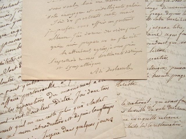 Lettres d'Adolphe Desbarolles relatives à la rédaction d'un article sur la restauration de Notre-Dame de Paris entreprise par Lassus et Viollet-le-Duc.