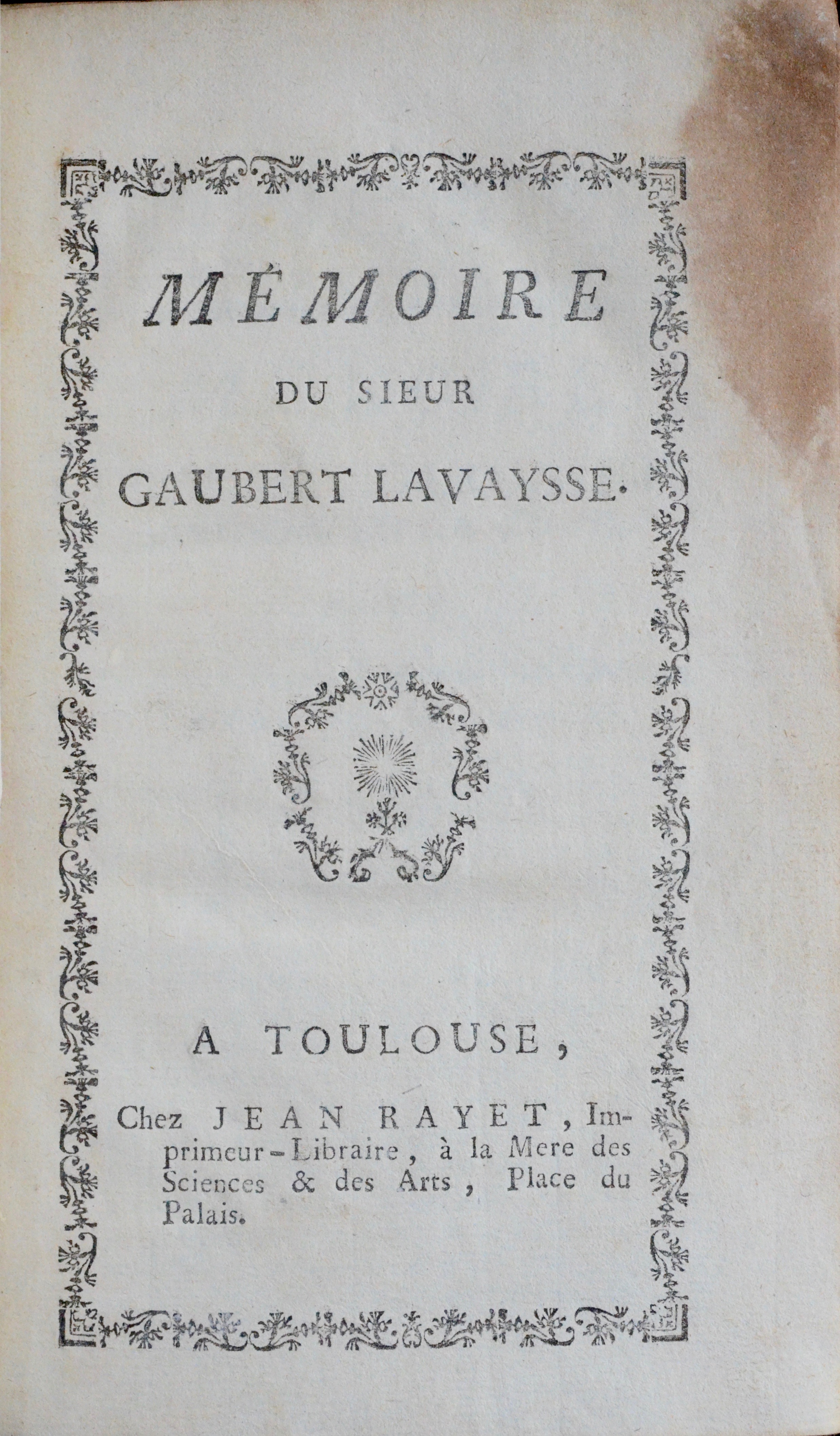 - Mémoire du Sieur Gaubert Lavaysse. Toulouse, Jean Rayet, s.d.