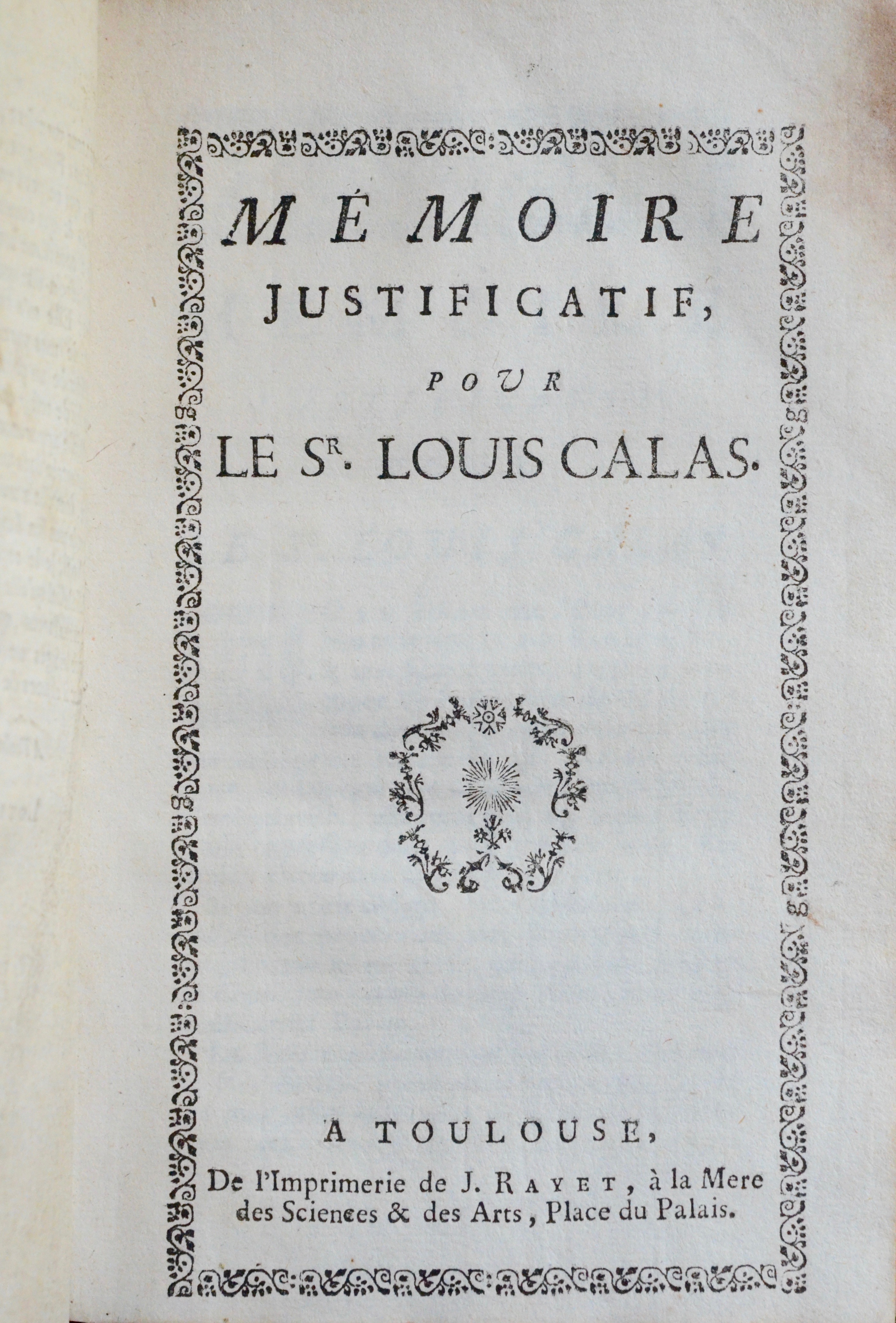 - Mémoire justificatif, pour le Sr. Louis Calas [par l'avocat Théodore Sudre]. Toulouse, J. Rayet, s.d.