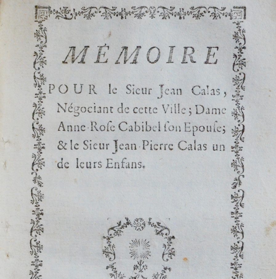 Le 13 octobre 1761, Jean Calas, négociant protestant toulousain, trouve, à son domicile, son fils Marc-Antoine mort, étranglé. Pensant qu’il s’est donné la mort et afin d’éviter le traitement infligé à l’époque aux suicidés, il tente de faire passer le suicide pour un meurtre. Néanmoins, la justice l'accusa de l’avoir lui-même assassiné, pour l’empêcher de se convertir au catholicisme. Condamné à mort le 10 mars 1762, Jean Calas est roué vif, étranglé et brûlé. Une partie de la population fut révoltée par ce verdict, dont Voltaire, qui considéra cela comme un assassinat et écrivit son Traité sur la tolérance, à l’occasion de la mort de Jean Calas (1763), qui débute ainsi : "Le meurtre de Calas, commis dans Toulouse avec le glaive de la justice, le 9e mars 1762, est un des plus singuliers événements qui méritent l’attention de notre âge, et de la postérité [...]."