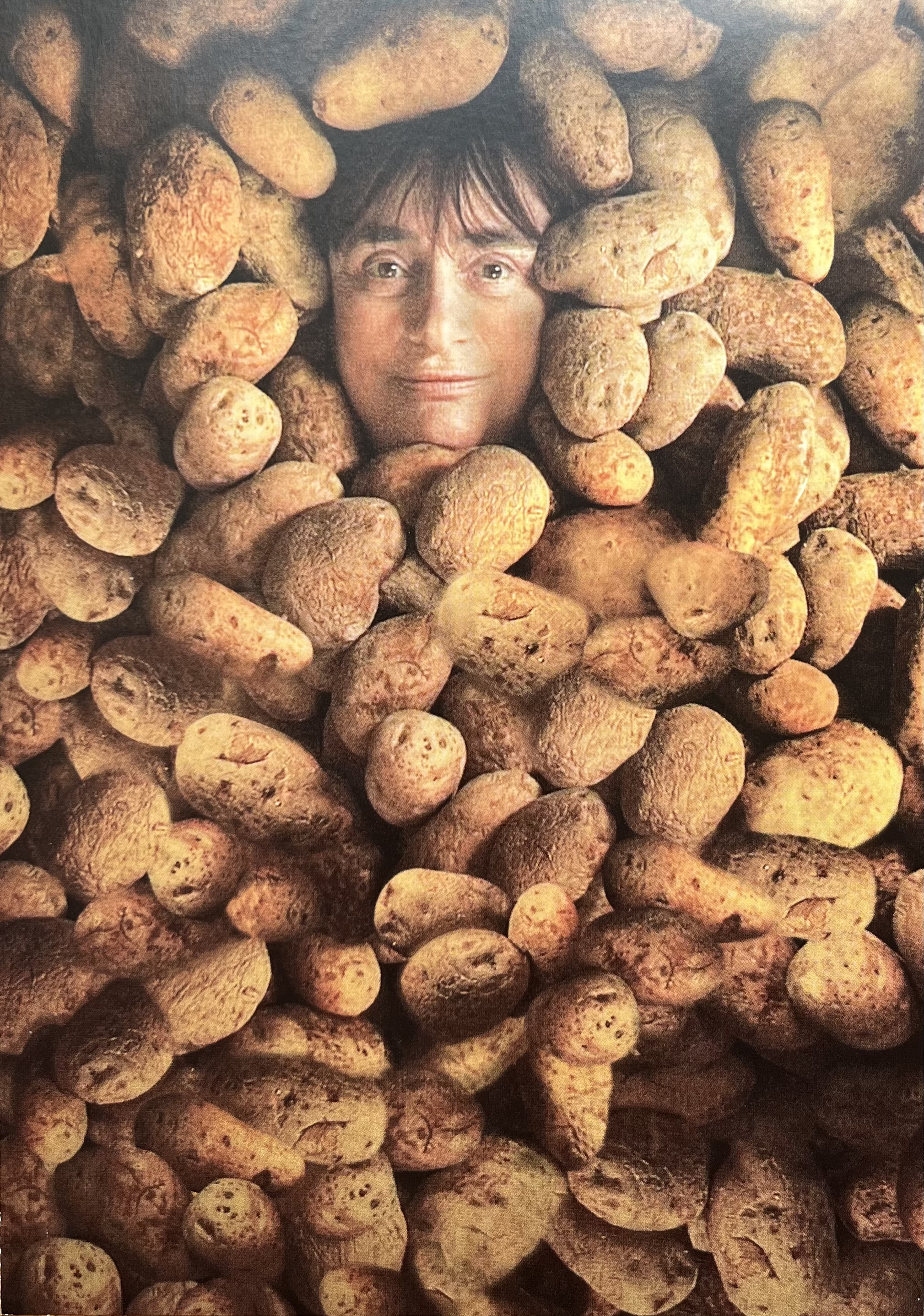 Au dos d'une reproduction photographique de "Musée de France", figurant son visage émergeant d'une marée de pommes de terre, Agnès Varda a écrite ces quelques mots :