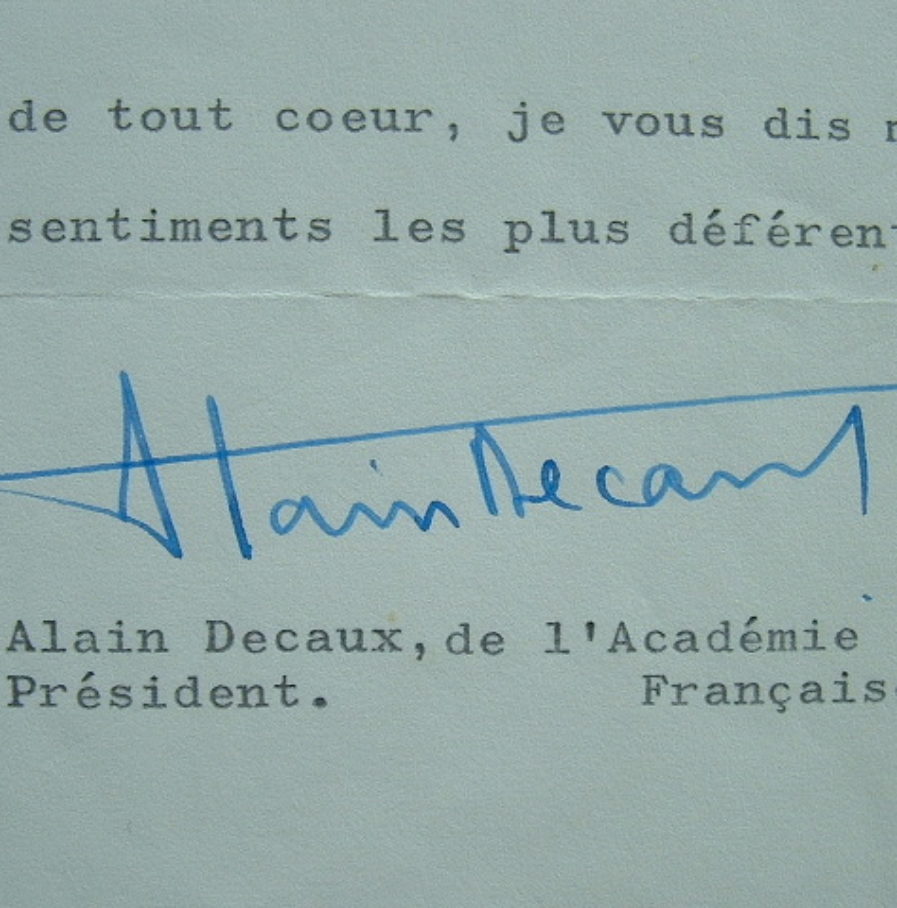 Comme président de la Société des amis d'Alexandre Dumas, Alain Decaux sollicite Sanguinetti pour sa participation à une "vente-signature" destinée à la restauration du château de Monte-Cristo. «Je sais bien qu'il y a d'innombrables ventes et que l'on abuse trop souvent des écrivains. Mais il s'agit de la restauration du merveilleux château de Monte-Cristo qu'il [Alexandre Dumas] habita à Port-Marly, ce château que nous avons sauvé et que nous voulons maintenant restaurer dans sa magnificence [...]».