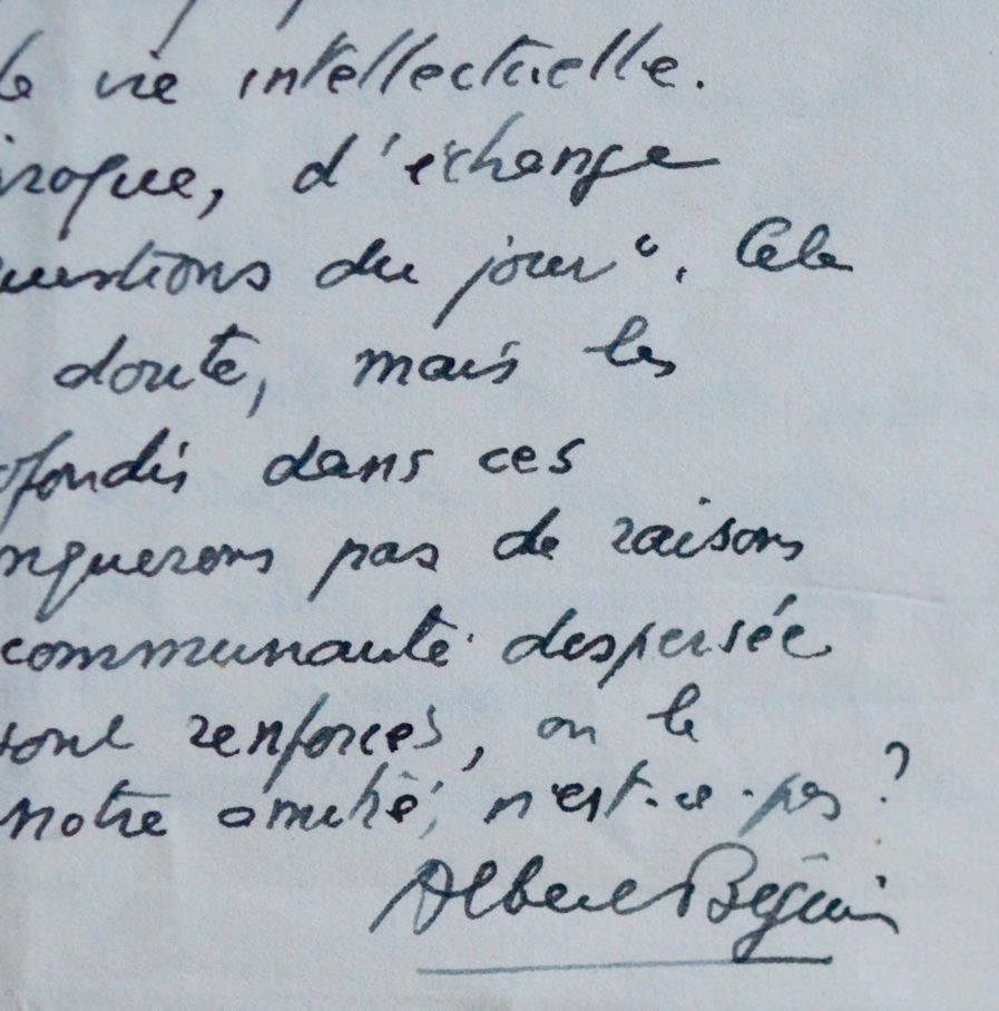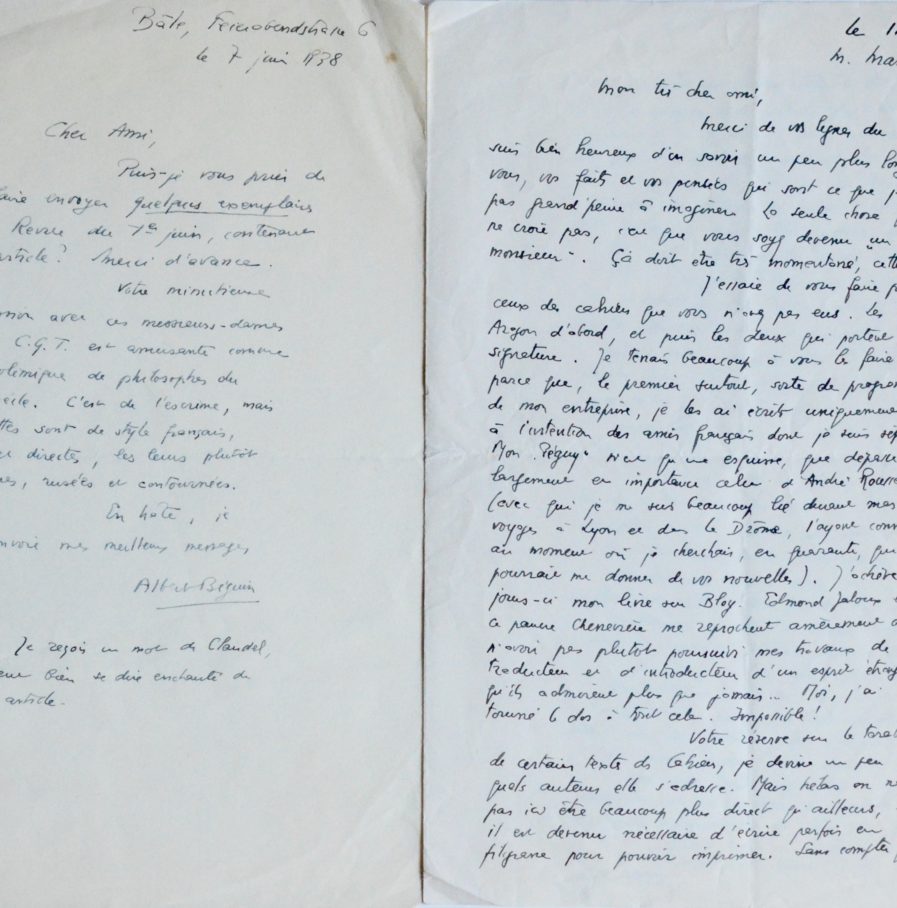 Albert Béguin (La Chaux-de-Fonds, 1901/1957)Deux lettres autographes signées de l'écrivain et éditeur suisse Albert Béguin.