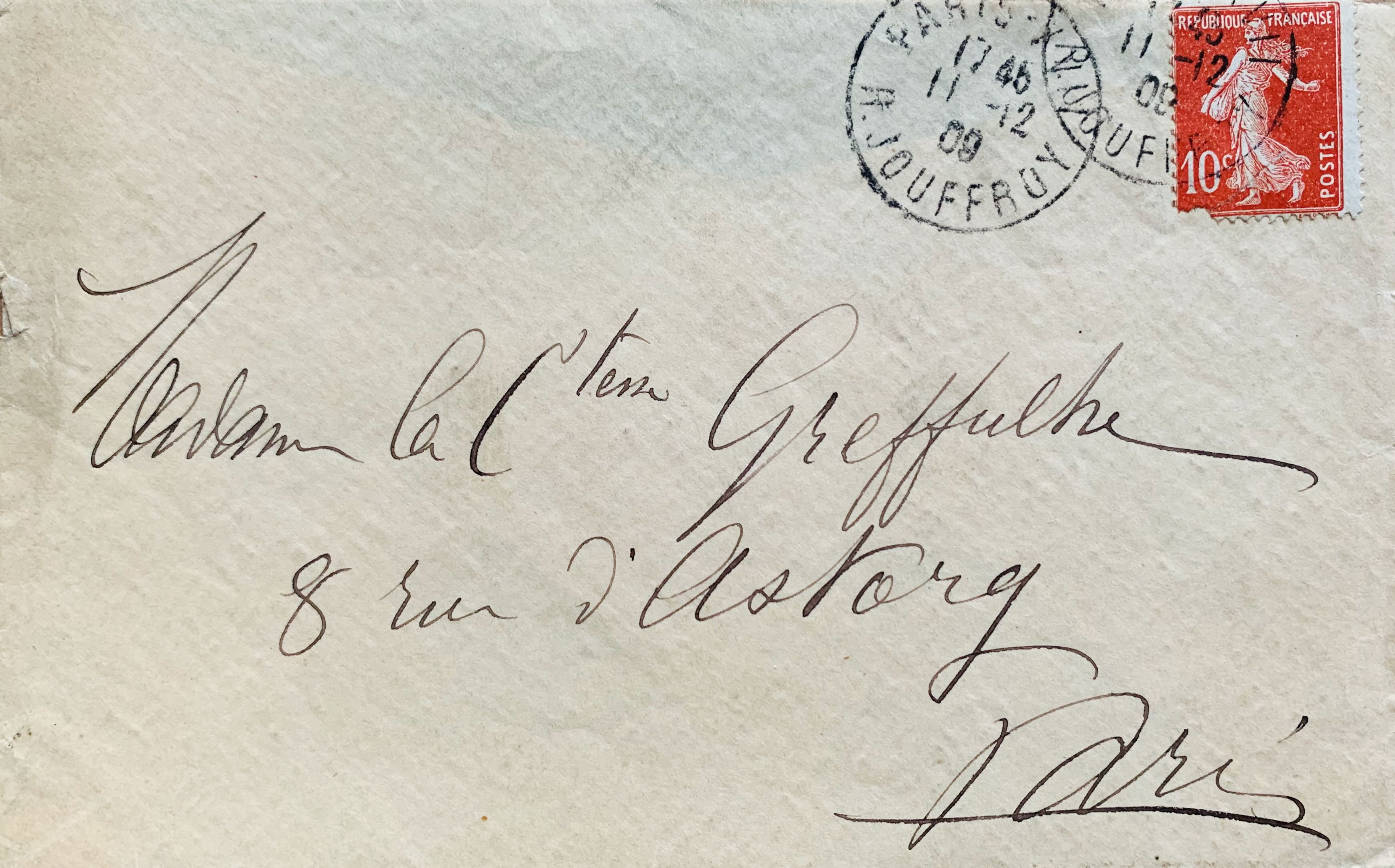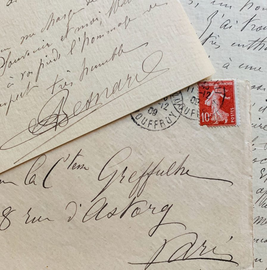Albert Besnard (Paris, 1849/1934)Longue lettre de 5 pages d'Albert Besnard à la comtesse Greffulhe au sujet d'un projet de tableau sur Saint-François de Salles et Sainte Jeanne de Chantal.