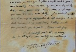 "On m'avait fait espérer votre descente dans le Midi. Mais comme nous ne vous voyons pas venir, je crois que le plus simple serait que vous remettiez l'exemplaire qui me revient, et les suites, à mon jeune ami Albert Vallet qui vous donnera cette lettre. J'ai entendu parler avec beaucoup de sympathie de cet ouvrage et je serais désireux de le posséder. Vallet me le fera parvenir par la poste. Merci mille fois [...]". [Il s'agit très certainement de Poésie de mots inconnus (1949), illustré par les plus grands artistes de l'époque, dont Albert Gleizes. Les poèmes sont signés Akinsemoyin, Albert-Birot, Arp, Artaud, Audiberti, Ball, Beauduin, Bryen, Dermée, Hausmann, Huidobro, Iliazd, Jolas, Khlébbnikov, Krutchonykh, Picasso, Poplavsky, Schwitters, Seuphor, Térentiev, Tzara. - Les illustrations originales de Arp, Braque, Bryen, Chagall, Dominguez, Férat, Giacometti, Gleizes, Hausmann, Laurens, Léger, Magnelli, Masson, Matisse, Metzinger, Miro, Picasso, Survage, Taeuber-Arp, Tytgat, Villon, Wols, Ribemont-Dessaignes].