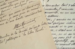 Albert Monniot (Nangis, 1862/1938)Dans ces deux lettres, la première à Charles Pathé, la seconde à Georges Fagot, le journaliste et écrivain Albert Monniot propose aux Studios Pathé ses services pour l'écriture de scénarii. En 1910, le cinéma est un art encore très jeune et Monniot demande des précisions techniques : «Je voulais vous demander tout d'abord si c'est à vous qu'incombent [...] les relations avec les auteurs. Dans l'affirmative, j'aurais eu recours à votre obligeance pour quelques indications. Je vous aurais demandé si ce que vous appelez un scénario, c'était une ébauche, un projet, un schéma, ou si au contraire vous désiriez qu'il ne vous fût soumis que des manuscrits définitifs, au point.» Il évoque également le soutien de Charles Pathé à son égard lors d'une tentative d'incarcération. Il semblerait que son ambition d'écrire pour le cinéma ne se réalisa pas.
