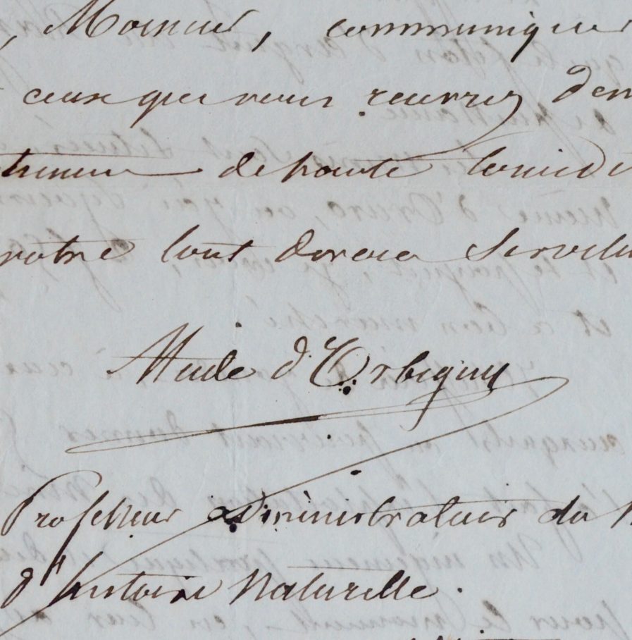 Alcide Orbigny (Dessalines d') (Couëron, 1802/1857)Lettre autographe signée d'Alcide d'Orbigny, adressée à un partenaire belge.