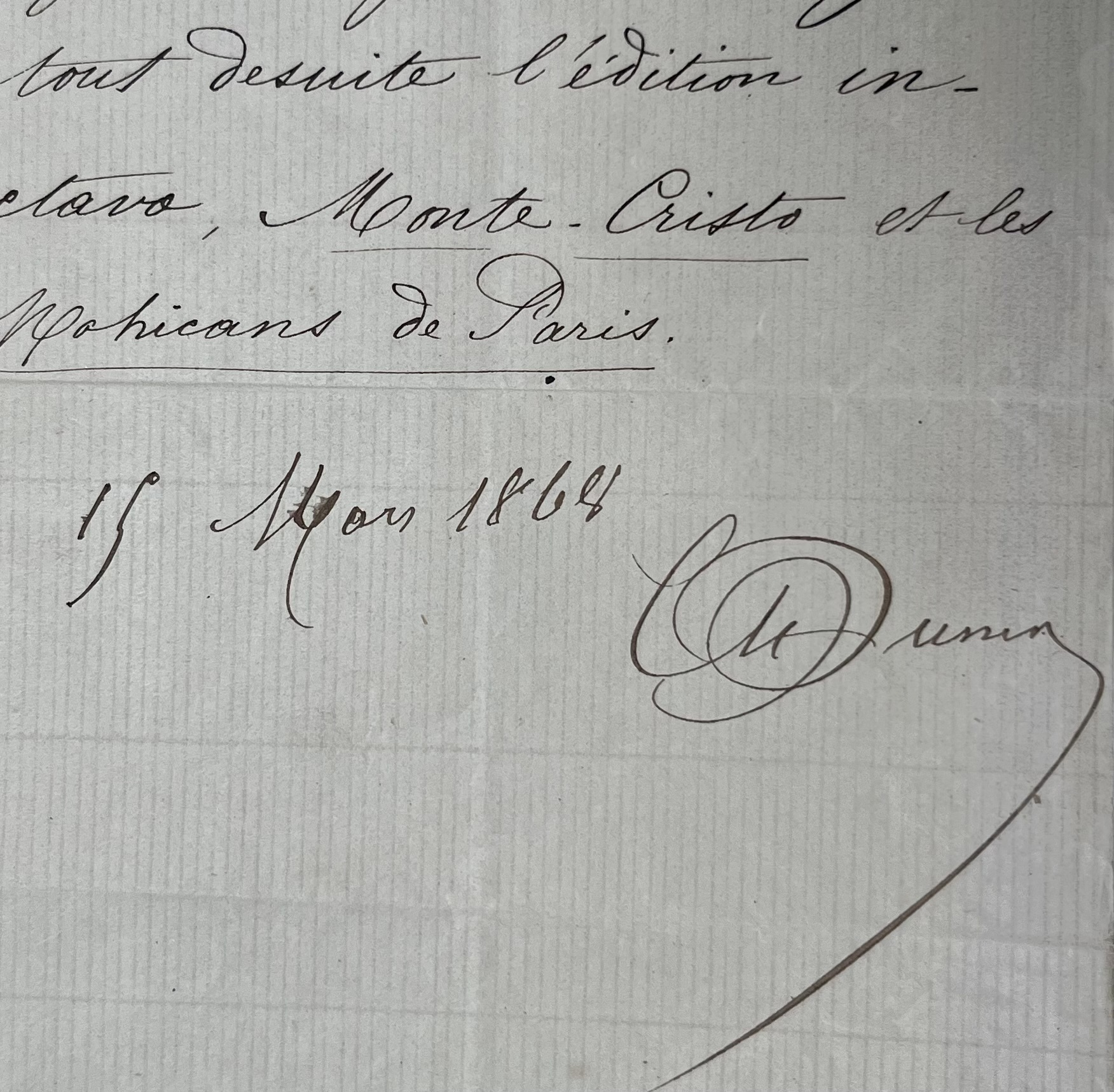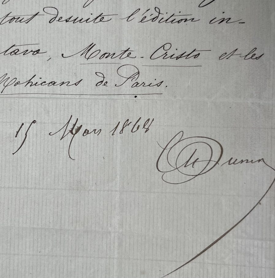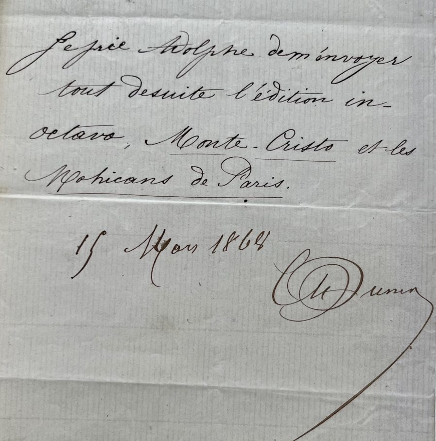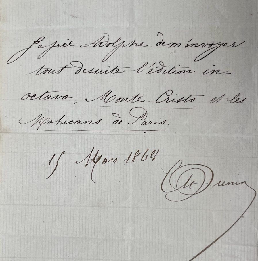 "Je prie Adolphe de m'envoyer tout de suite l'édition in-octavo, Monte-Cristo et les Mohicans de Paris."