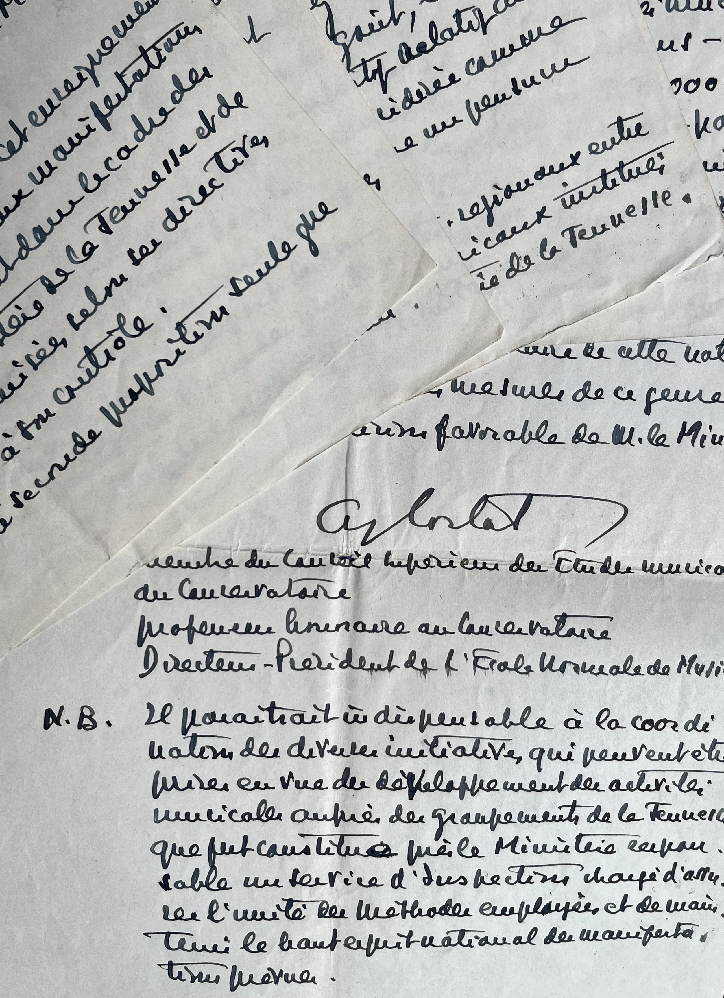 Alfred Cortot (Nyon, 1877/1962)Manuscrit autographe signé d'Alfred Cortot intitulé : "Note pour M. le Ministre de la Jeunesse et de la Famille concernant les différentes modalités d'activité musicale qui peuvent répondre aux directives de son ministère".