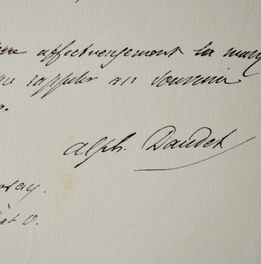Alphonse Daudet (Nîmes, 1840/1897)Au moment où Léon Daudet passe ses examens de baccalauréat pour entamer ses études de médecine, son père Alphonse fait jouer ses relations pour lui en faciliter la réussite. Ces lettres émouvantes témoignent des relations pleines d'affection et de respect du père pour son fils qui, bien que très doué pour la matière littéraire, désire poursuivre des études de médecine, études qu'il mènera jusqu'au bout avant de s'orienter finalement vers la littérature.