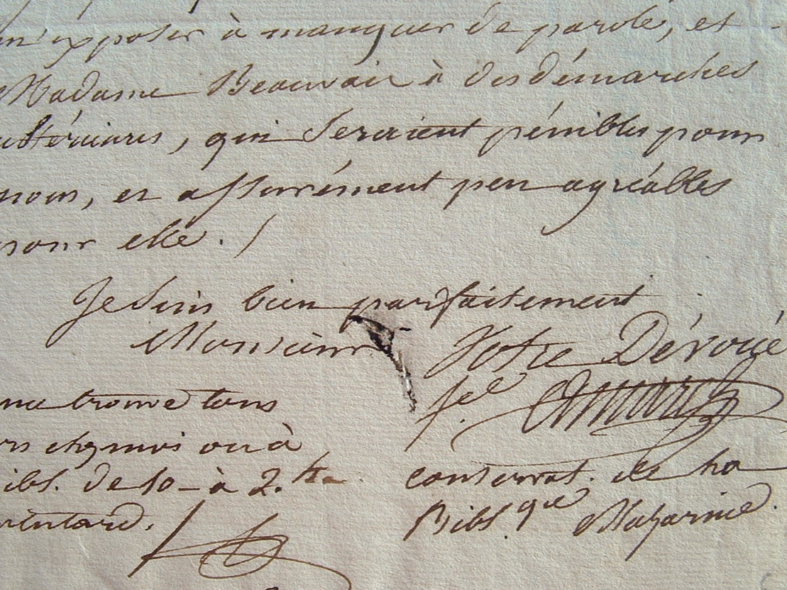 Amar du Rivier, a attendu en vain son correspondant à la Bibliothèque, jusqu'à deux heures, pour lui remettre un ouvrage. «Je n'en suis pas moins persuadé que vous êtes en mesure pour vous le faire remettre au plus tôt. Je l'ai annoncé à M. Petit Radel pour la fin de la semaine au plus tard. J'espère que vous voudrez bien ne pas m'exposer à manquer de parole et madame Beauvais à des démarches ultérieures, qui seraient pénibles pour nous [...]».