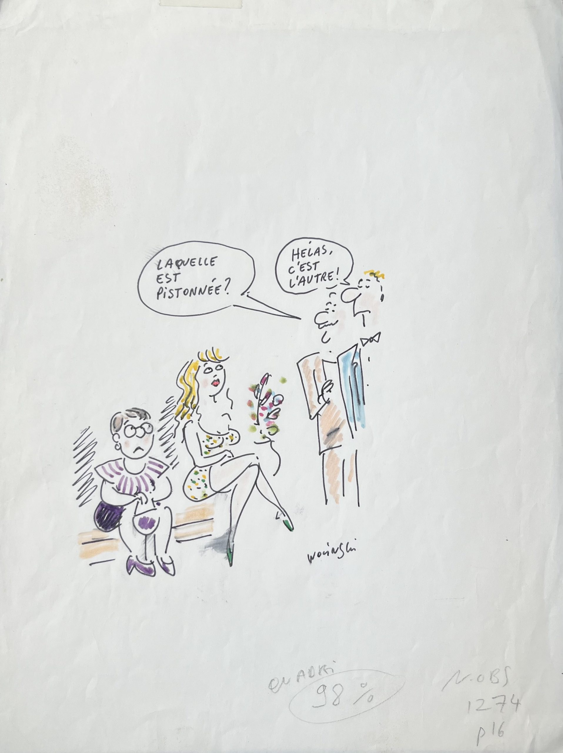 Amusant dessin original de Georges Wolinski pour le Nouvel Observateur