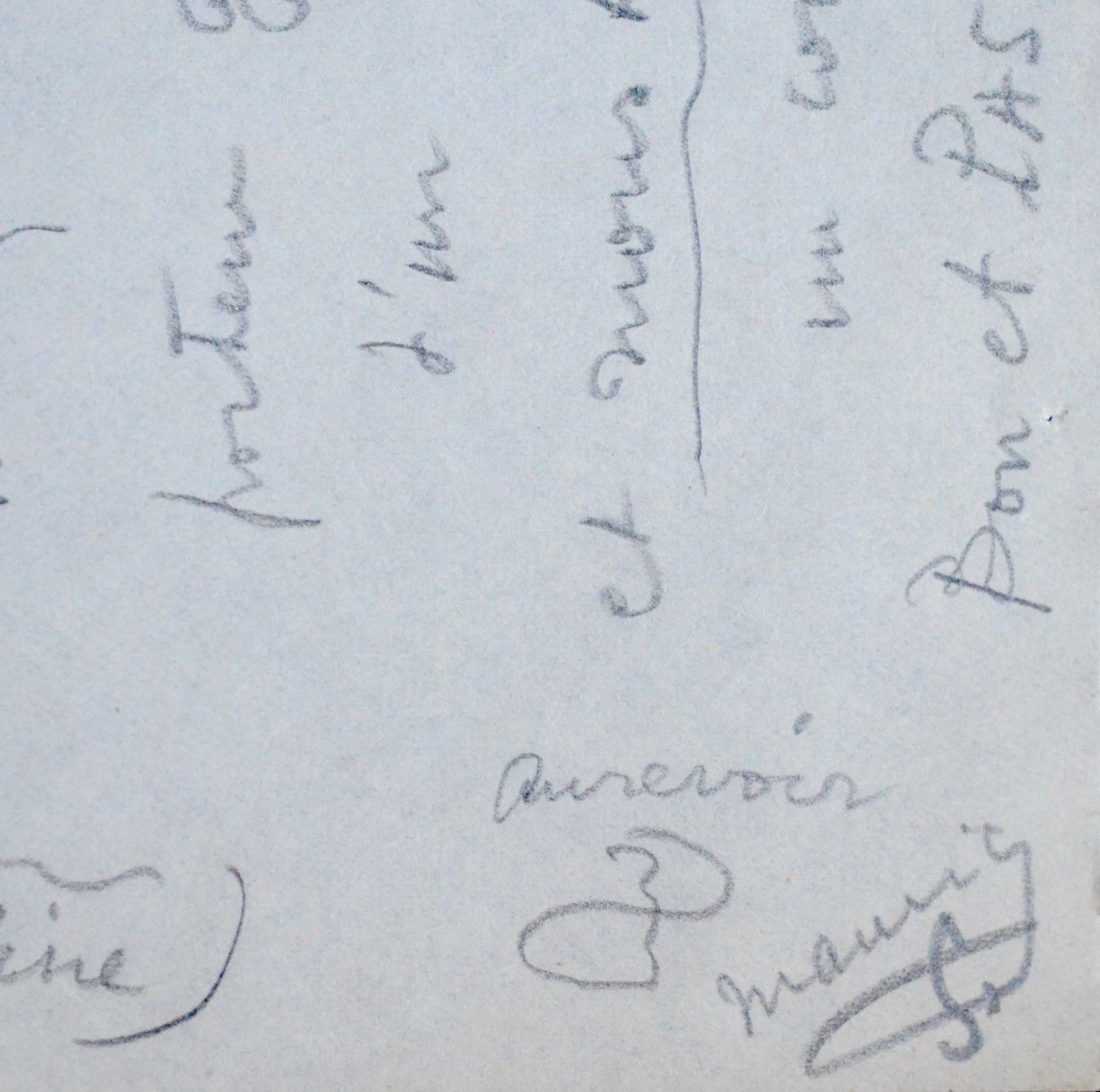 Crayon à papier. En-tête imprimé "Hôtel Vouillemont - Paris".