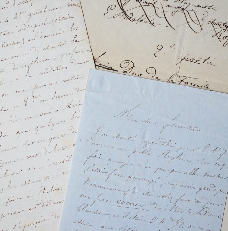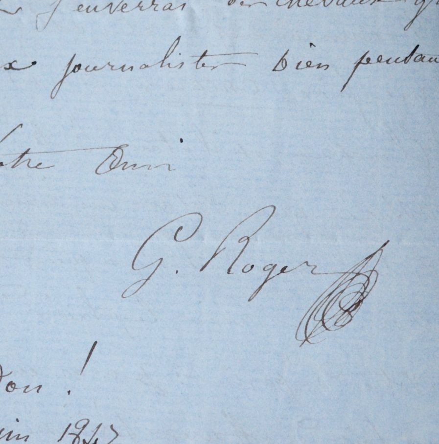 Gustave-Hippolyte Roger (Paris, 1815/1879)Ensemble de deux amusantes lettres et une liste de Gustave-Hippolyte Roger. Les lettres sont adressée à son ami, le critique musical, écrivain et poète Pier Angelo Fiorentino (1811-1864).
