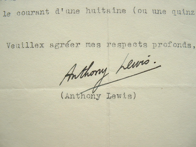 Anthony Lewis, qui avait pu assister aux concerts «dirigés par le maestro Toscanini», en octobre 1934, grâce à l'intervention de son correspondant, demande à obtenir la même faveur «pourvu que M. Toscanini dirige encore l'orchestre Walther Straram, ou bientôt après la fête de Salzburg [...]».