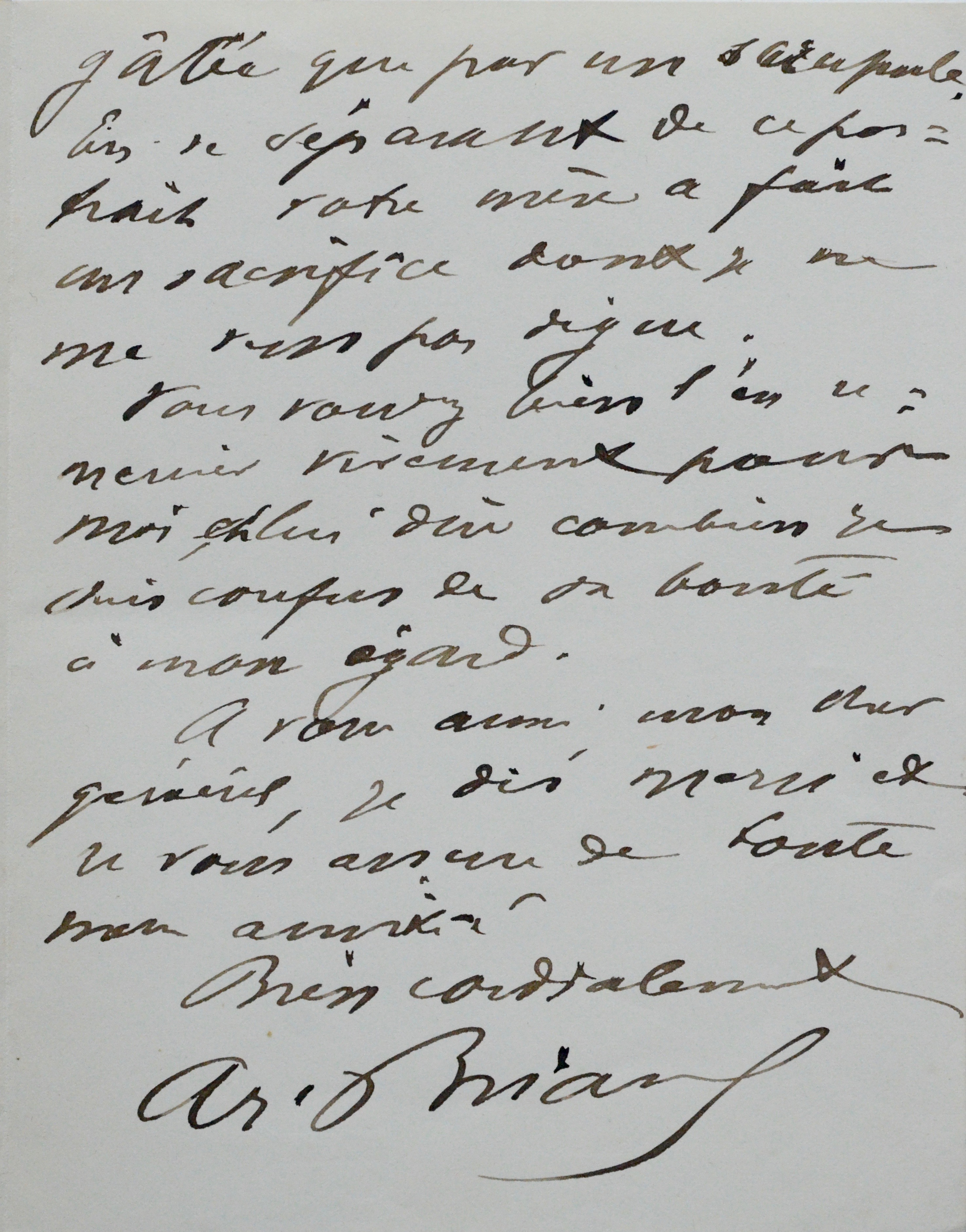 Aristide Briand (Nantes, 1862/1932)Lettre autographe signée d'Aristide Briand, adressée au Général François Léon Jouinot-Gambetta.