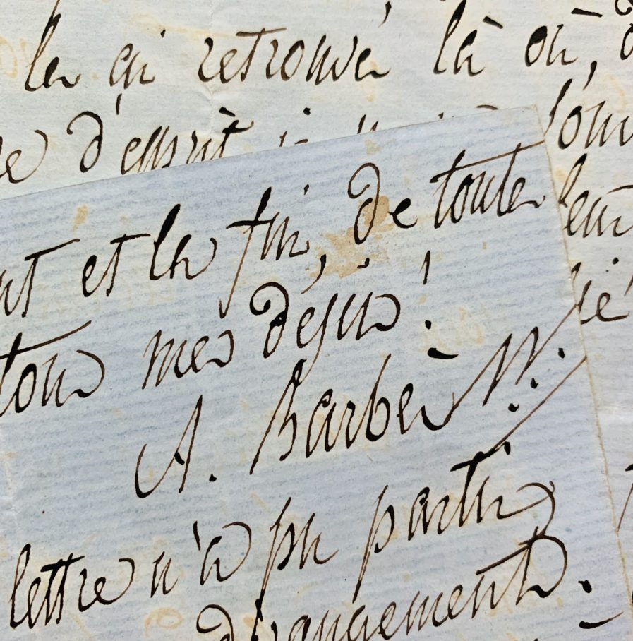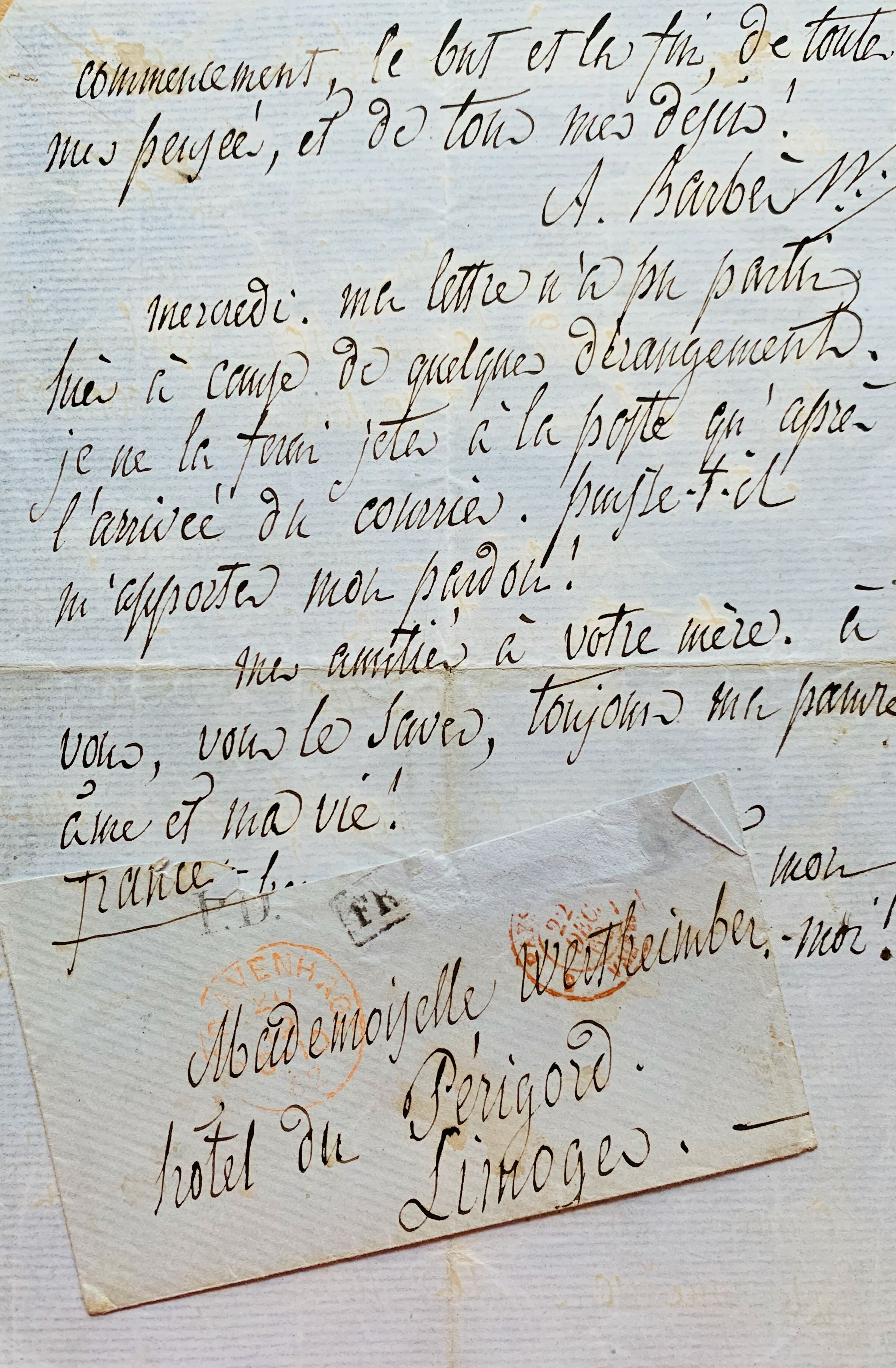 Armand Barbès (Pointe-à-Pitre, 1809/1870)Splendide lettre d'amour d'Armand Barbès à une jeune comédienne et cantatrice.