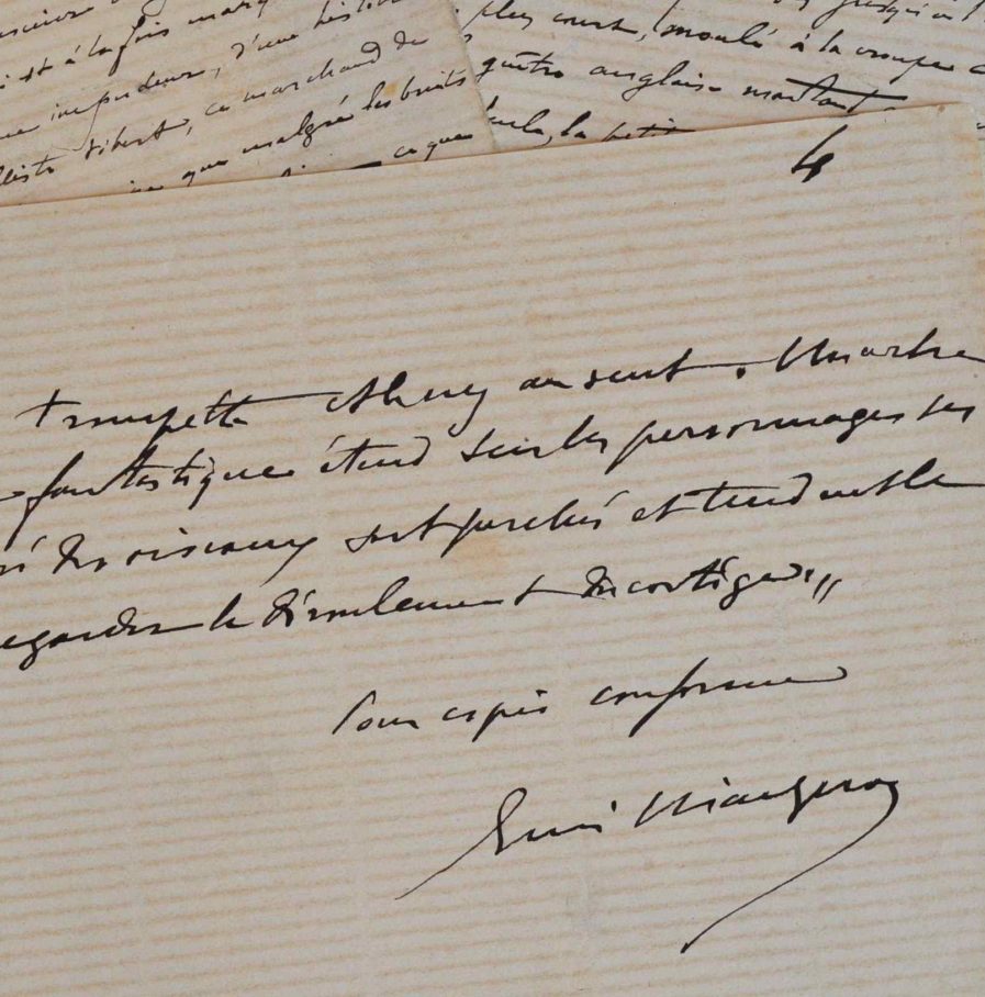 Article destiné à paraître dans un journal, avec quelques annotations de l'imprimeur, intitulé "La Mode". «Parlons enfin des déshabillés, le dernier must de l'art d'être parisienne qui si elle sait s'habiller, sait encore mieux se déshabiller [...]». D'une petite écriture très fine et dense.